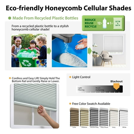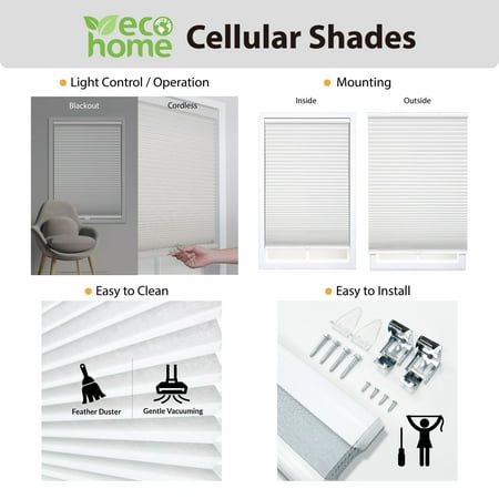 This Mainstays Cordless Polyester Blackout Cellular Shade is designed to provide your room darkness both day and night, while offering full privacy to meet the needs of every room in the home and workplace. Cellular shades are a great source of energy savings by keeping hot and cold air from entering or leaving your room. Blackout Cordless Cellular Shades are a practical and modern alternative to standard window blinds, offering safe cordless solutions for homes and institutions where young children and pets are present. Only at Walmart.