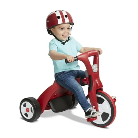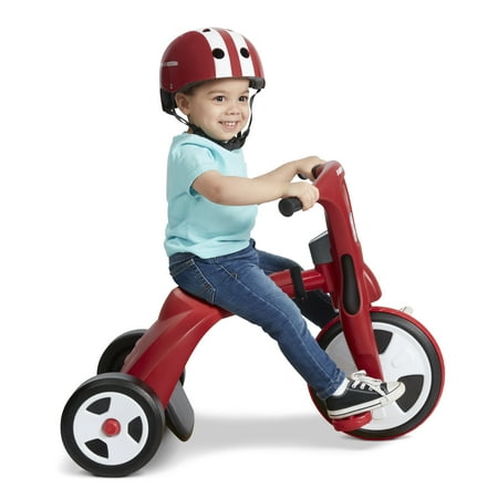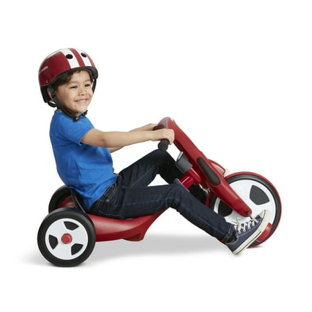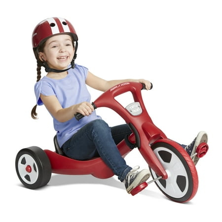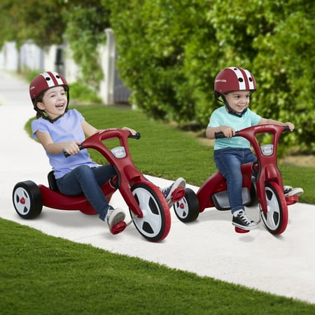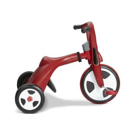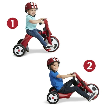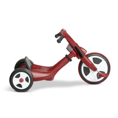 Double the fun with Radio Flyer’s Twist Trike! The unique, innovative design of the Twist Trike allows you to easily convert from a classic trike to a chopper. Simply open the clamp, twist the frame, and lock again – no tools required to transform between modes! The seat adjusts in chopper mode, ensuring years of fun for your child. It features an 11.5” front wheel with a tread strip for added traction and comfort hand grips. Maximum weight capacity 65 lbs. Recommended for boys and girls ages 2 to 7 years. Unisex design for all kids to enjoy!