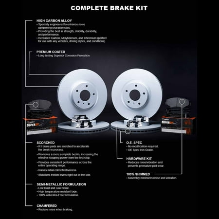 R1 Concepts Front Rear Brakes and Rotors Kit |Front Rear Brake Pads| Brake Rotors and Pads| Super Duty Brake Pads and Rotors| Hardware Kit WDXH2-46074