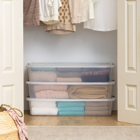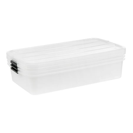 Declutter and organize with ease using these reliable storage containers designed for everyday use in any space. These plastic storage bins with lids offer a practical and efficient solution for organizing your home, garage, office, dorm room, or classroom. Whether you're storing clothing, tools, crafts, pantry goods, or holiday decorations, these totes for storage provide the strength, capacity, and convenience you need. Each storage bin features a secure, latching lid that helps protect contents from dust, dirt, and moisture, making them ideal for both short-term and long-term use. Their versatile design is perfect for holding seasonal items, kids’ toys, school supplies, or office materials. Built-in handles make every storage tote easy to carry and reposition, while the stackable shape helps you maximize vertical storage on shelves, in closets, or inside pantries. These bins also function as universal under bed plastic storage, with a slim, low-profile design that fits conveniently under most beds and furniture. They are a great solution for storing shoes, bedding, off-season clothing, or extra linens while keeping items easily accessible and out of sight. Constructed from durable materials, these heavy-duty storage totes with lids are made to withstand frequent use in garages, basements, or busy home environments. Their clear body allows you to quickly identify contents without opening the lid, adding convenience and efficiency to your storage system. Whether you're organizing a room, packing for a move, or simply reducing household clutter, these plastic storage containers provide a dependable and stylish way to stay organized. Designed for durability, ease of use, and space-saving performance, these bins are the ideal solution for any lifestyle—from daily organization to long-term storage.