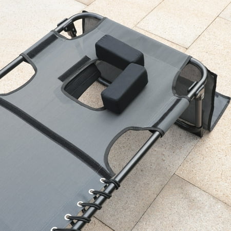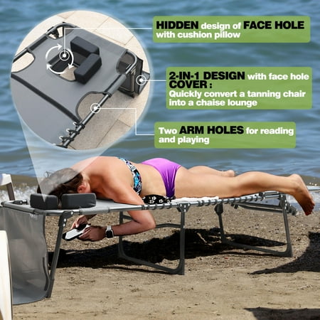 VEIKOUS adjustable tanning chair is designed specifically for those looking to soak up some sun and work on their tan. It features a face and armhole design for maximum comfort while lying face down. The cushioned seat and backrest provide added support and relaxation. Whether you're lounging on the beach or by the pool, this beach tanning chair is a must-have for all sun-seekers.