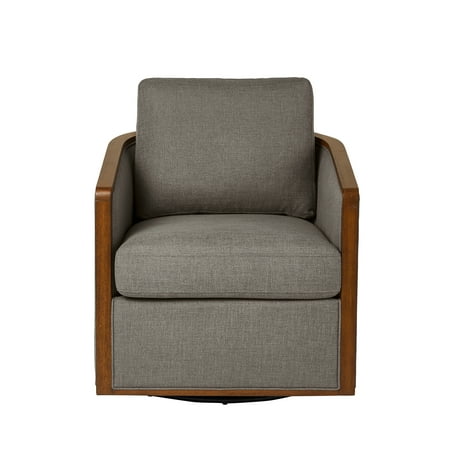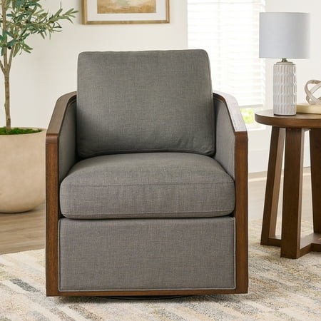 Add both comfort and style to your living space with the Better Homes & Gardens Windsor Swivel Accent Chair. Featuring a 360-degree swivel, this chair lets you easily turn to face the action or relax in your favorite position. The durable fabric upholstery not only feels great but is built to last, perfect for busy homes. Its farmhouse-inspired barrel design, plush pillow back, and squared armrests bring a cozy, laid-back vibe to any room. With a sturdy wood construction and available in two timeless colors—Gray and Cream—this chair combines style, durability, and function for the perfect addition to your living room, lounge, or reading nook.