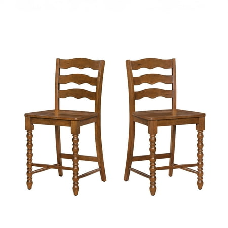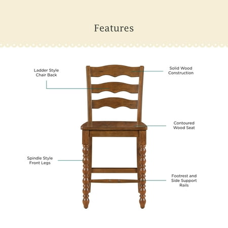 Add a touch of rustic charm to your kitchen or dining area with the Pioneer Woman Harper Counter-height Wood Stools. This set of 2 stools boasts a solid wood construction, available in both homestead brown and white finishes, making them a perfect fit for any traditional farmhouse setting. The spindle-style front legs add a classic touch, while the ladder-style chair back offers both style and comfort. These stools are designed to be versatile, pairing seamlessly with counter-height dining tables or kitchen counters. Plus, they complement the Pioneer Woman Kitchen Island beautifully (sold separately). These stools are a stylish and practical addition to your home. Meet Ree: Ree Drummond is an author, TV personality, social media phenom, and the woman behind the popular Pioneer Woman lifestyle blog that started it all. She's also a lover of butter, basset hounds, Ethel Merman, her hunky, cowboy husband Ladd, and their four kids. Her casual country style and delicious recipes have made her a go-to for all things cooking and entertaining.
