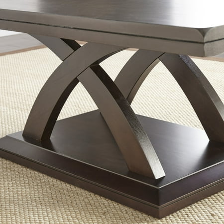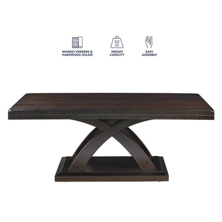 The Jocelyn Coffee Table from Steve Silver is an exquisitely crafted, casual yet sophisticated table featuring a decorative base with a thick top. Its' espresso cherry finish only adds to the warmth of your indoor living space while the crisscross legs add visual interest. This table has a unique minimalist frame and clean lines to only compliment your surrounding decor. The mango veneer adds a modern style combined with classic look.