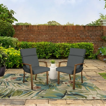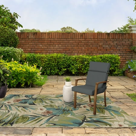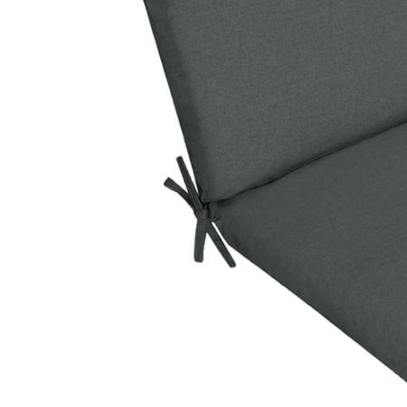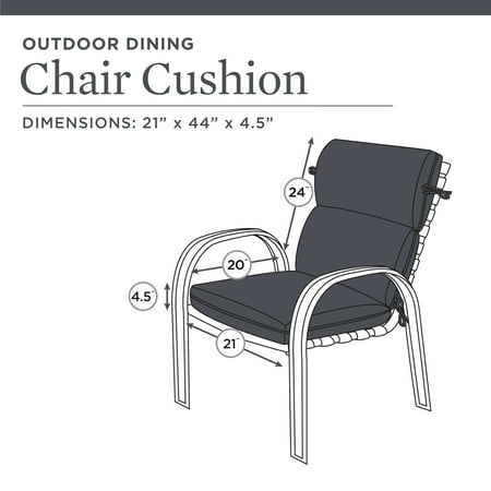 Transform your outdoor space into a haven of comfort and style with Walmart's premium selection of Outdoor Cushions. This Better Homes & Gardens cushion features a center tuft that give it a custom look and includes perfectly placed ties to keep it locked in place, so your space always looks perfectly pulled together. This chair cushion measures measures 21 in. wide x 44 in. length x 4.5 in. high making it the perfect size for a wide variety of outdoor dining and accent chairs. Our updated fabric has a soft hand-feel which makes this cushion soft and durable. The 3M Scotchgard treated fabric resists fading & repels water & stains. Whether you're lounging by the pool, hosting a barbecue, or simply soaking up the sun, our cushions provide the ultimate blend of comfort and aesthetics.