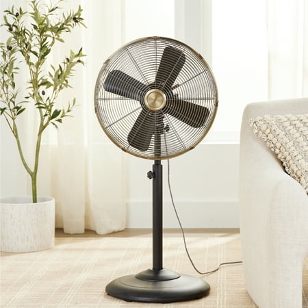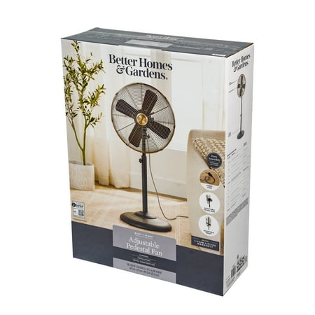 The Better Homes & Gardens New 3 Speed 16 in Vintage Design Metal Stand Fan in Black is designed with style in mind and brings just the right amount of air flow to any room. The Better Homes & Gardens 3 Speed 16 in Vintage Design Stand Fan in Black features your choice of 3 speeds and oscillation to cover the entire space with adequate airflow and is easy to assemble with the included instructions. The fan has a sturdy, weighted base to prevent tip overs and has an adjustable height. The Better Homes & Gardens 3 Speed 16 in Vintage Design Metal Stand Fan is perfect for both large and small rooms including garages, workshop, bedrooms, living rooms, dens, playrooms, offices, dorm rooms, and more.
