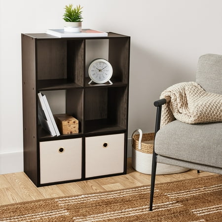The Mainstays 6-Cube Storage Organizer features six compartments perfectly sized for storing and displaying office supplies, books, clothes, craft supplies, photos, collectibles and so much more! This sturdy bookcase can stand vertically or horizontally to best suit your needs and space. They are compatible with Mainstays 10.5" x 10.5" collapsible storage bins (sold separately) and available in multiple finishes. Three open-back cube shelves make managing cords and cables easy, while three closed-back shelves help keep items securely housed. Add an accent piece that is both functional and stylish to your living room, family room, home office, playroom, closet and more, with the Mainstays 6-Cube Storage Organizer.
