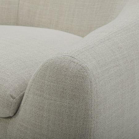 Bring style and comfort to your living room with this Emerson Curvy Accent Chair from Better Homes & Gardens. On the outside, sloped, square armrests give this chair a uniquely modern touch, and cream-colored linen upholstery soothes the eye. On the inside, Dacron and high-density foam form a seat so cozy you’ll never want to get up. Durable, supportive, and easy to clean, the Emerson Curvy Accent Chair is made to elevate your home. No assembly required — this item arrives at your doorstep ready to place and enjoy.