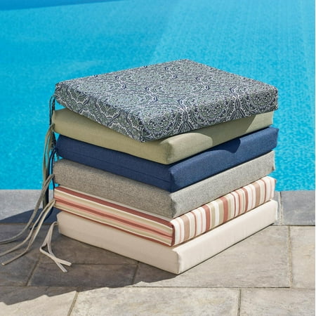 Our premium seat replacement cushion features a durable foam core to add comfort, support, and style to outdoor furniture. The fade resistant 100% solution dyed polyester fabric is treated with 3M Scotchgardâ„¢ to resist fading, water, and stains. Designed to fit most dining chairs. This 1-piece set includes 1 seat cushion. Cushion ships vacuum-sealed with removable fabric cover with a 3-year limited warranty. Equipped with ties.