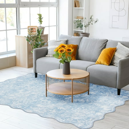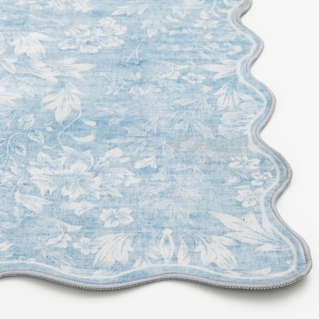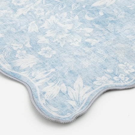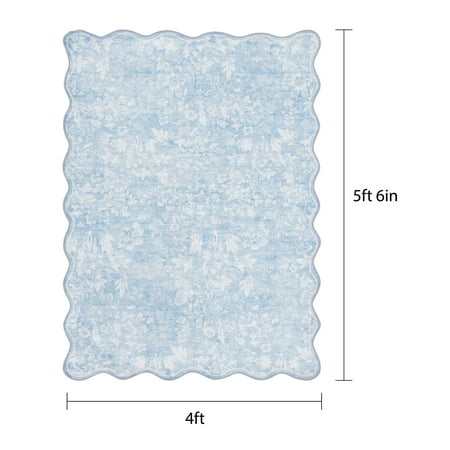 Enhance your home with the Mainstays 48"x66" Blue Feather Faux Fur Scalloped Indoor Area Rug. Featuring a beautifully detailed feather print on plush faux fur, this rug offers a soft and inviting feel underfoot. Crafted from durable polyester, it resists fading to maintain its rich colors and intricate design. The unique scalloped edges bring a distinctive touch, making it a stylish addition to bedrooms, living rooms, or dorm rooms. Perfect for adding warmth and sophistication, this rug effortlessly blends comfort with timeless beauty.