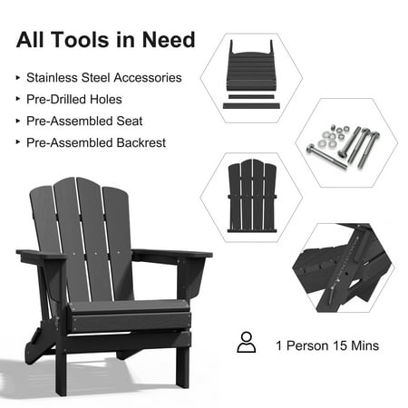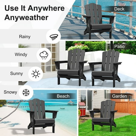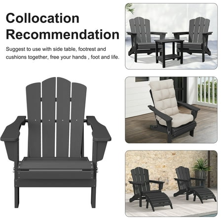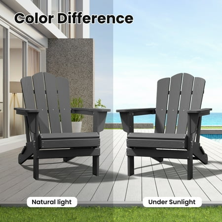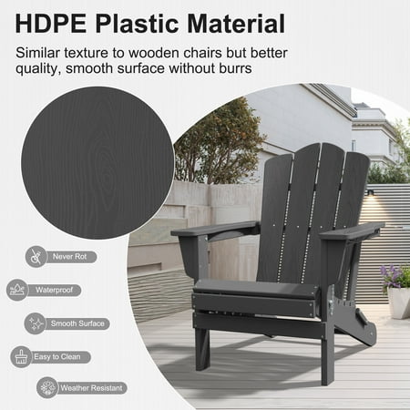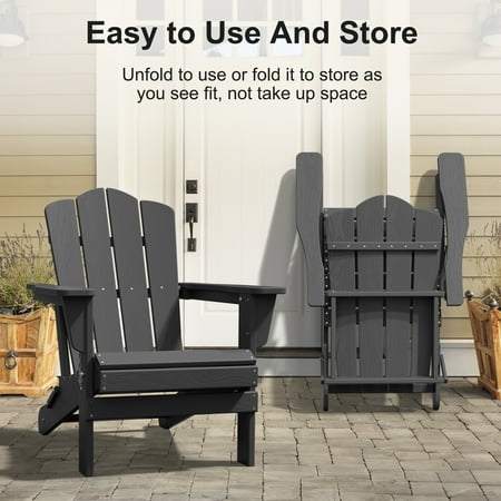 Stop worry about finding the balance between style and comfort of chairs! Personality is as important as comfort. Here, our JUSTLET plastic can meet all of your demands. Take our JUSTLET adirondack chair, have good time with your lover and friends in the garden, lawn or deck. Also, you don't need to be struggled with the size of our adirondack chairs, you can store it easily because its folding design. This folding patio plastic outdoor adirondack chair is stable , flexible and heavy enough to be safe in the wind. The large seat, tall backrest, and wide armrests make it a seating solution built for rest, relaxation, and rejuvenation. No matter what the weather is like where you live, this folding plastic adirondack chair is able to weather the storm. It is made out of premium HDPE plastic, a material that won't wear down, thanks to its UV resistance and natural water resistance.Which is different with solid wood especially in rainy days. In this way, you can place it sheltered or unsheltered in any outdoor space you choose, including the patio, pool, garden area, deck, balcony, lawn, picnic space, and beyond. Turn your outdoor living space into one you love to inhabit when you bring home the Folding Patio Furniture.