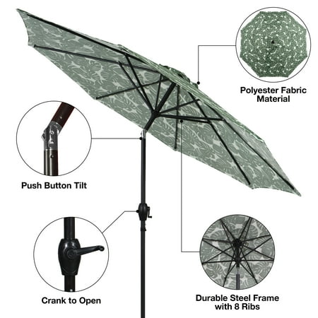 Mainstays 9' Monstera Palm Crank Lift and 3 Position Tilt Patio Umbrella