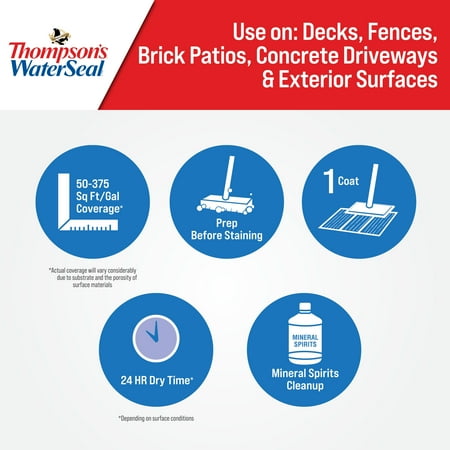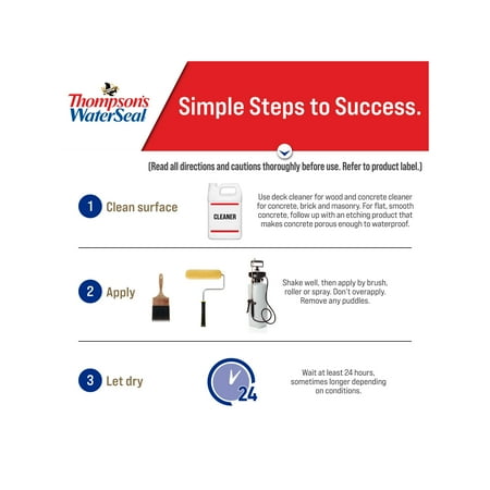 Thompson's WaterSeal Clear Multi-Surface Waterproofer has proven to waterproof concrete, brick, exterior wood, and other exterior surfaces. Use as a concrete waterproofer, brick sealer, and wood sealer to prevent water damage. It dries clear, and helps to maintain natural color. It allows wood to gray naturally.
