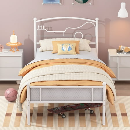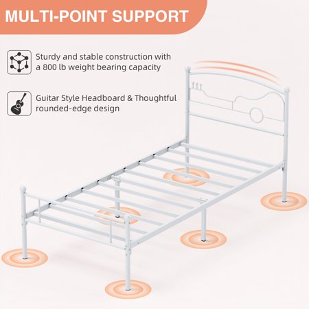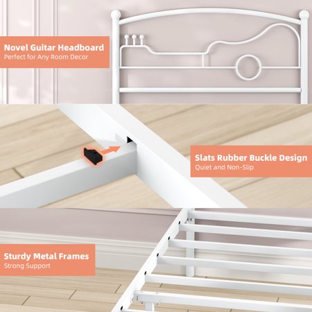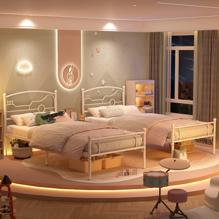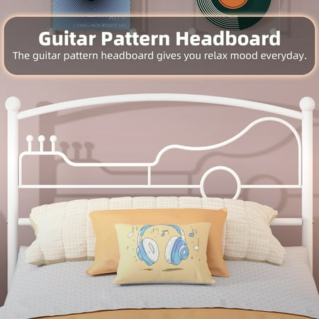 It's an attractive and imaginative guitar shaped metal headboard design that adds vibrancy and temperament to your child's bedroom, making sleeping a happy affair. This metal bed frame mattress foundation is made from durable, premium quality steel to provide sturdy support for your mattress. It is an easy-to-assemble sturdily construction system that will provide you with reliable and convenient bedding support, the unique cute shape design will fit any boys and girls room decor. Give your kids an art bedroom atmosphere with our single metal bed frame with headboard and footboard. When you see the cute guitar shape, you will have every high spirit morning and sweet dream night, it will make your child more like music, just buy it for your children who love playing guitar as gift.
