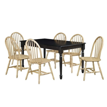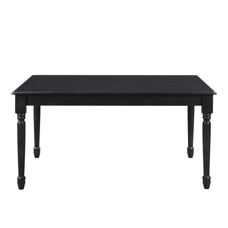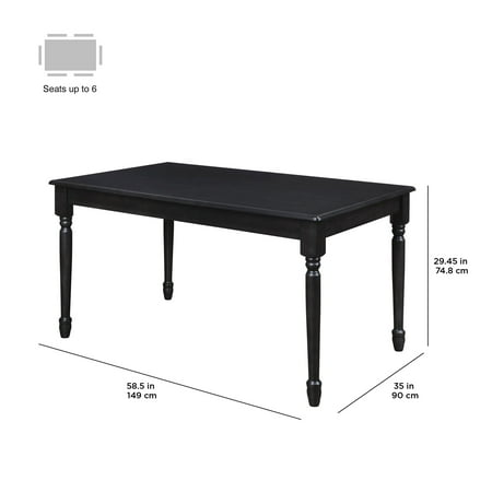 Update your dining room with this spacious Better Homes & Gardens Autumn Lane Farmhouse Dining Table. It features a sturdy design with turned legs crafted from solid wood and sturdy tabletop. The traditional style complements almost any interior decor or furniture style from modern and contemporary to rustic and minimalist and all things in between. The finish provides a versatile look that can work well in a kitchen, dining area, or any other area in the house; it can even be used as a desk in your study or home office. Available in three finish options, you can choose from a two-tone Black and Warm Oak, White and Natural or a solid Black finish. The large table can sit up to six people, making it ideal for entertaining extended family or guests. It is easy to assemble so you can start to enjoy it quickly. Add the Autumn Lane Windsor chairs and Farmhouse bench (sold separately) to this traditional dining table and provide plenty of comfortable seating for everyone.