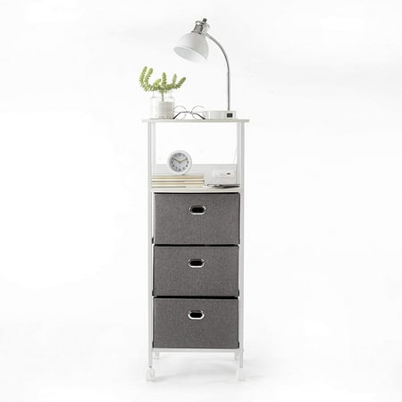 This Urban Shop Rolling Storage Cart is made with poly linen drawers and painted metal frame with MDF wood top that is modern and classic in design. The clean and simple style of the Urban Shop Rolling Storage Cart can match rooms of all styles and designs. The Urban Shop Rolling Storage Cart is perfect for adding storage to any room of the house. Featuring a built in charging dock and 3 drawers, the Urban Shop Rolling Storage Cart is perfect for bedside, in bedrooms, bathrooms, living rooms and offices. Measures 15.75"W x 11.8" D x 39.4"H. 4 Caster rolling wheels for easily mobility, Built in 2 USB Charging ports and AC outlet. Some assembly required. This rolling cart can be spot cleaned for easy care.