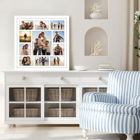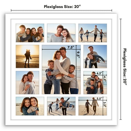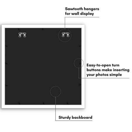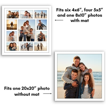 Enhance your living space with the Americanflat 20x20 Collage Picture Frame. Crafted with attention to detail, this 20x20 frames features a timeless design with a durable MDF molding in classic black. It's tailored to beautifully display your treasured moments, offering a custom white mat with versatile openings for various photo sizes. Equipped with hanging hardware, it offers effortless vertical or horizontal wall mounting, allowing you to effortlessly curate your own gallery wall. Its gallery style design seamlessly integrates into any decor, adding a sophisticated touch to your interior. Beyond aesthetics, this black picture frame ensures premium protection for your photos, boasting a polished plexiglass front to guard against dust and scratches. With a sturdy backboard and easy turn buttons, loading and updating photos is a simple task. Choose Americanflat for superior craftsmanship and secure packaging, ensuring your gallery frame set arrives in immaculate condition, ready to showcase your memories for years to come.