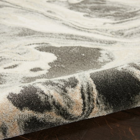 Color trends come and go, but the elegance and chic style of grey has a truly timeless quality about it. That's what makes the Inspire Me! Home Decor Elegance Collection such a perfect fit for any home needing an extra touch of contemporary energy. Intricate abstract patterns in amazing detail bring every imaginable shade of grey to bear in this collection of rugs that blends with any interior, while superior machine woven construction gives each rug exceptional durability and texture. These are truly dynamic designs that will instantly invigorate any room. Charcoal grey, beige, and cream flow together in an enticing painterly pattern in this Inspire Me! Home Décor contemporary rug from the Elegance Collection. It's the perfect abstract touch to bring cosmopolitan chic to your favorite room.