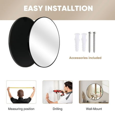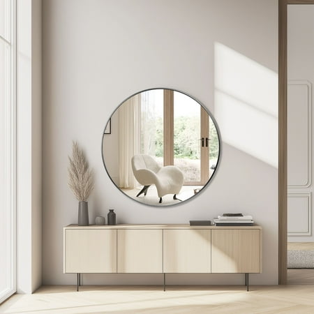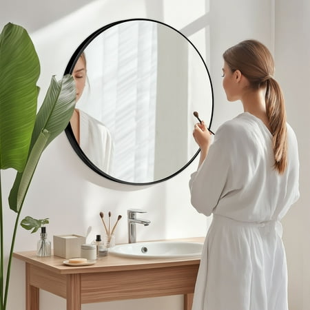 Our wall-mounted round mirror features a sleek and modern design that adds a touch of elegance to any room. The round mirror is made of high-quality materials, ensuring durability and clarity. Its simple yet stylish frame complements a variety of decor styles. Perfect for bathrooms, bedrooms, or entryways, this round mirror is easy to install and will enhance the overall aesthetic of your space. Elevate your home decor with this chic and functional wall mirror.