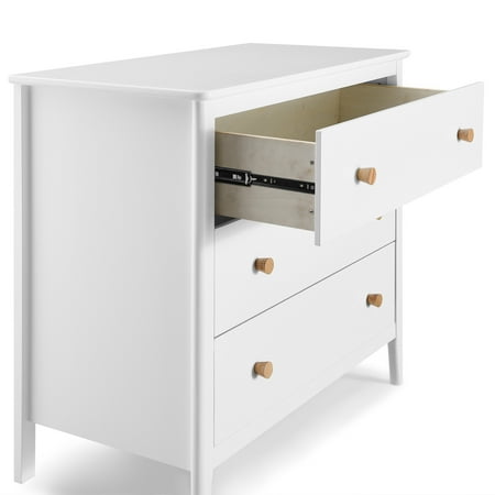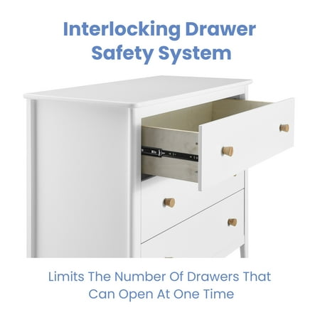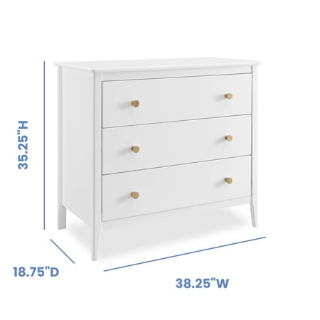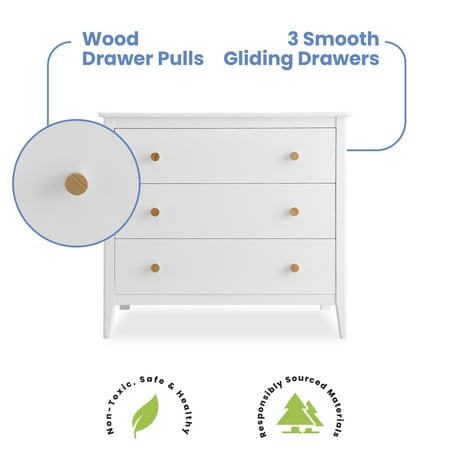 The Casey 3 Drawer Dresser with Interlocking Drawers by Delta Children will instantly elevate your nursery with its mid-century modern style. Clean lines, playful round knobs, and tapered legs define this beautiful dresser. For your child’s safety, this dresser is outfitted with and interlocking drawer system that limits the number of drawers that can be opened at one time. Pair this dresser with other pieces in the Casey Collection for a coordinated look, as well as the coordinating Changing Top #W100810 (sold separately) to transform this dresser into a convenient changing table. This Delta Children dresser is tested to meet the current requirements of ASTM F2057, the mandatory CPSC safety standard that protects young children from furniture tip-over incidents. For your children’s safety, only purchase dressers that comply with this standard. For additional security, Delta Children strongly recommends that all dressers in your home be anchored; all Delta dressers include a wall anchor. To learn how to properly secure your dresser, please see the product assembly instructions or visit our website."