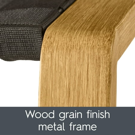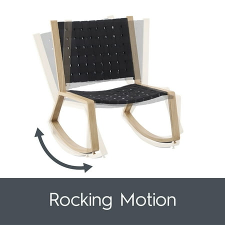 Add comfort and character to your patio, deck or porch with the Better Homes & Gardens Ventura Steel Outdoor Handwoven Low Rocking Chair, featuring a modern, minimalist look that complements any outdoor setting. This weather resistant rocking chair offers a safe and gentle rocking motion for all ages, thanks to its low-profile design. The powder-coated metal frame boasts a beautiful wood-grain finish, while the handwoven black polyester straps form a supportive seat and backrest. Built for strength and durability, this outdoor rocker supports up to 250 lbs and stands up to the elements season after season. Pair it with other pieces from the Better Homes & Gardens Ventura Collection for a cohesive outdoor space that’s ideal for relaxing, reading, or catching up with a friend. Site to Store Pick Up Note: This item is packaged in 1 large box that may not fit into a standard-sized vehicle. Please make sure you have a large car or truck for store pickup.