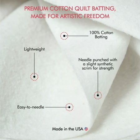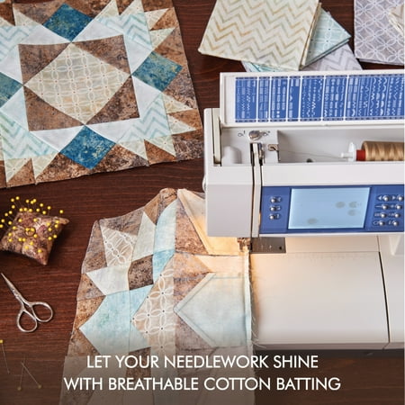 Immerse yourself in the art of quilting with Fairfield’s Toasty Cotton Quilt Batting! This lightweight, 100% natural cotton quilt batting is perfect for both machine and hand quilting and is needlepunched with a slight synthetic scrim for strength. The low loft of this batting makes it a favorite among quilters, as it is easy to needle through and accentuates stitch work. Safe for use, this breathable quilt batting is ideal for a wide variety of projects, including clothes, quilts, wall hangings, and arts and crafts. Craft with confidence, as projects created using this batting remain washable after quilting, ensuring long-lasting maintenance; the shrinkage is only 2–3%. Unleash your creative spirit and elevate your creations with this strong, resilient quilt batting. It measures 90" by 20 yd and weighs 3.25 oz./sq. yd.; the loft is 3/16", with the recommended quilting distance being up to 8".