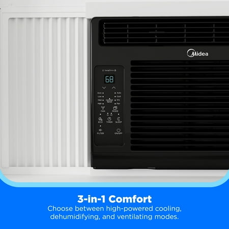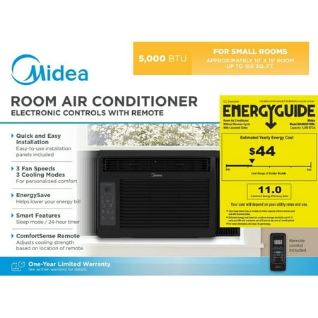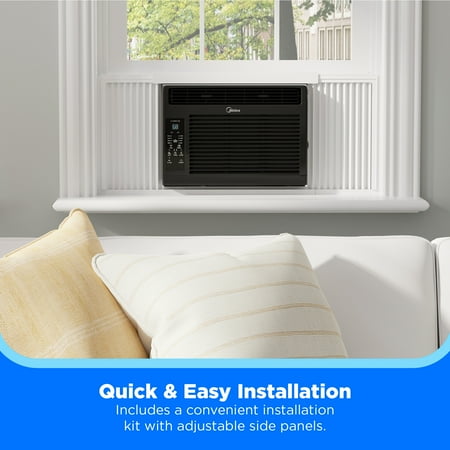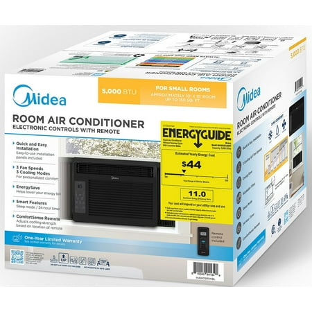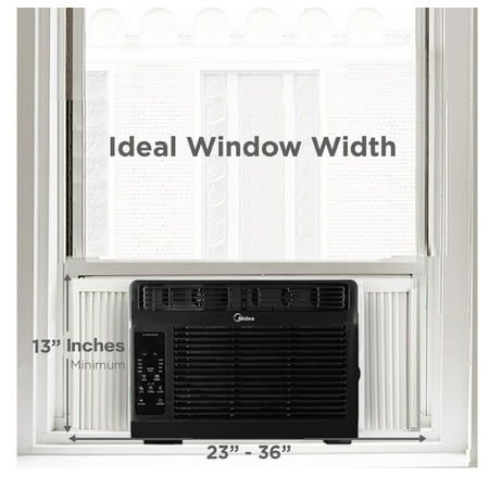 Stay comfortable all summer long with the new Midea 6,000 BTU Window AC with Comfort Sense Control. Midea’s new Comfort Sense remote automatically adjusts the cooling strength based on the location of the remote! With three different cooling settings and three different fan speeds - there is no doubt you will find the setting that provides you with optimal comfort. You can select high, medium, or low - or use the energy saver button, designed to help you lower your energy bill. With the 24-hour timer you could set the timer, so your air conditioner turns on an hour before you get home! The Midea 6,000 BTU Window AC with Comfort Sense remote is ideal for cooling smaller spaces up to 250 square feet. The Midea 6,000 BTU Window AC with Comfort Sense also comes with a clean filter indicator button that lights up when it is time to remove and clean it. The Midea 6,000 BTU Window AC with Comfort Sense is designed to fit windows 23”-26” wide, and minimum height of 13”.