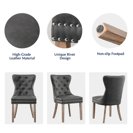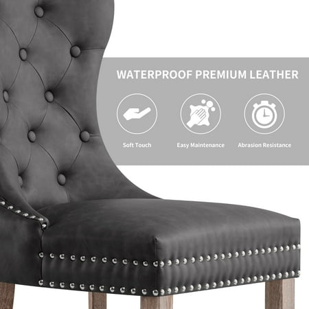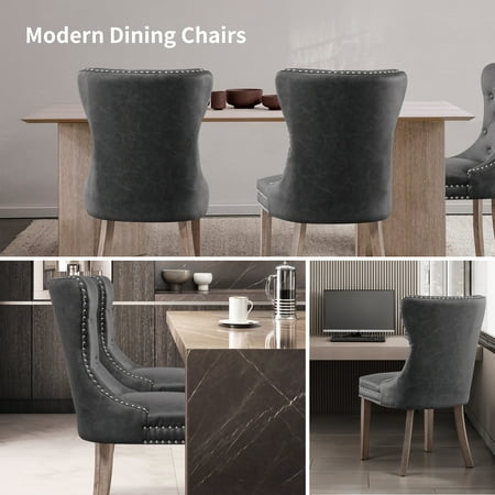 The Subrtex Leather Dining Chair 2-Piece Set will bring a touch of mid-century elegance to your home with a timeless and modern look that easily blends into any decor. The simple, modern design of our dining chairs will complement any type of dining table. In addition to everyday use, it is also perfect for hotels, weddings, celebrations and other ceremonial décor.Elevate your dining experience with this set of 2 upholstered dining chairs that combine timeless elegance with modern comfort. Designed with a graceful wingback silhouette, button tufting, and nailhead trim, these chairs make a refined statement in any dining room, kitchen, or breakfast nook. Crafted with easy-to-clean waterproof PU leather and filled with high-density foam, they offer long-lasting support and a smooth seating experience. The ergonomic high back provides full spine support, while premium wooden legs ensure strength and stability for everyday use. Available in four versatile colors—white, brown, gray, and black—to match any interior style. Whether you're gathering for dinner, working from home, or enjoying a morning coffee, these modern dining chairs offer beauty, comfort, and practicality in one package.