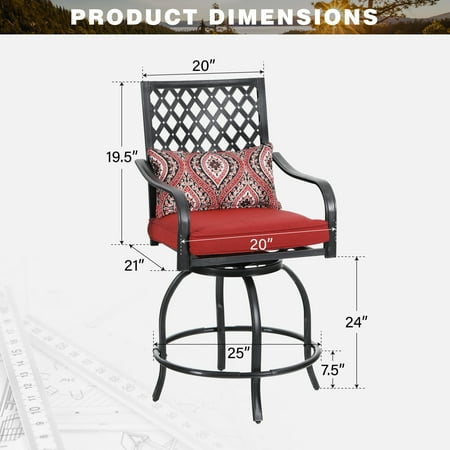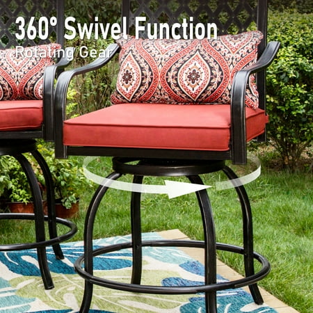 Summit Living patio stools are becoming a popular choice to furnish outdoor living spaces. The set includes a set of 2PCS bar stools which can also be best match with our Summit Living bar tables. For your comfort, the chairs features with a full 360 degrees to be accessible for ant angle. You can enjoy a cup of wine with our bar stools outside. Extra large dimension can provide you enough space to sit comfortably, beautiful color will add more vitality to your home.