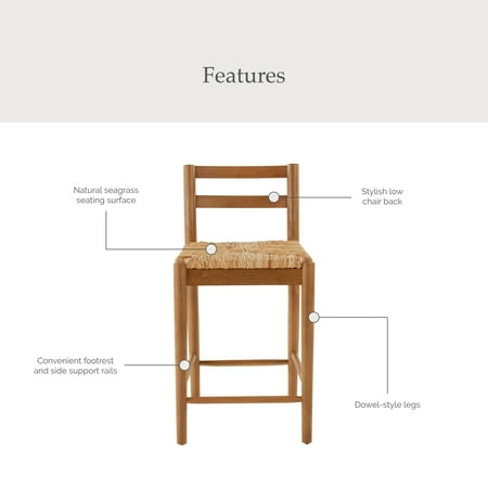 Bring a touch of contemporary elegance to your kitchen or dining area with the My Texas House Laurel Counter-height Dining Stools. The stylish set of two is perfect for family gatherings or intimate dinners. Crafted from solid wood, these stools boast a warm brown finish that complements any décor. The standout feature? A natural seagrass woven seating surface that offers both a unique texture and a touch of coastal charm, providing a comfortable and stylish seating option. The low chair back, combined with a sturdy footrest and dowel-style legs, ensures lasting durability and comfort. Whether you’re enjoying a casual breakfast or hosting a festive evening, these contemporary stools are designed to enhance your counter-height dining table or kitchen counter space. Make every meal a moment to remember with the ideal blend of function and style. My Texas House brings Southern charm and modern elegance together, crafting home decor that reflects warmth, style, and comfort. With a focus on high-quality materials and timeless designs, My Texas House helps you create a space that feels both inviting and uniquely yours.