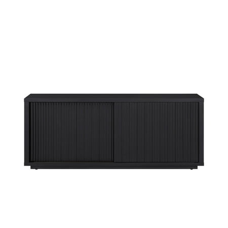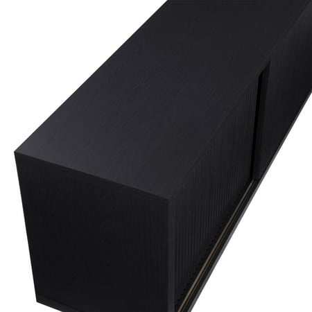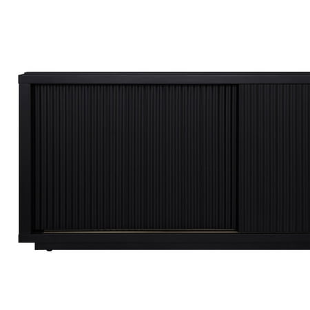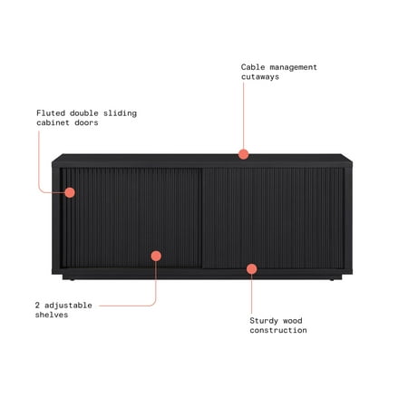 The Beautiful Fluted TV Stand adds style and function to your living room or entertainment space. It’s designed to hold large TVs, creating a stable and secure setup for your home entertainment. The sliding cabinet doors feature eye-catching fluted panels for a modern touch and easy access to storage. Inside, two adjustable shelves keep your media devices and accessories organized and out of sight. Made with sturdy wood, this TV stand is built to support your TV and last for years. Pair it with other Beautiful by Drew Furniture collection pieces to complete your space (sold separately).