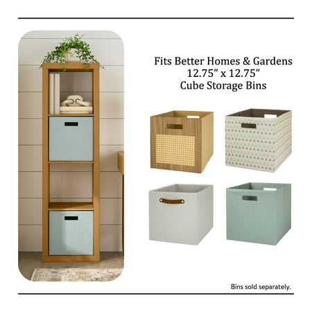 Add function and style to your home with the Better Homes & Gardens 4-Cube Vertical Storage Organizer. Available in multiple finishes, including both solid and wood grain options, this cube organizer features four 13" x 15" x 13" compartments, the perfect size to display books, collectibles, photos, artwork, storage bins and baskets. An open back design makes it easy to manage cords and cables. This sturdy bookcase can stand vertically or horizontally to best suit your needs and space. The top panel supports up to 100 lbs when standing vertically and 77 lbs when horizontal. Each cube shelf supports up to 22 lbs. Combine it with other Better Homes & Gardens Cube Organizers and Cube Storage Bins (sold separately) to create a complete, customized storage and display system. Easy to assemble with included wall attachment system, the Better Homes & Gardens 4-Cube Organizer is perfect for your office, living room, den, playroom and more.