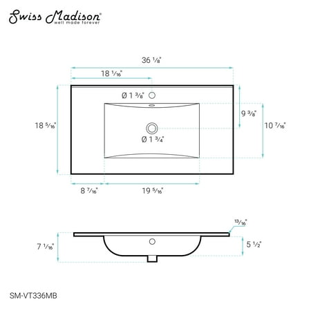 Discover intricate precision and design excellence in the Swiss Madison collection, redefining contemporary bathroom aesthetics. Discover the epitome of seamless design and effortless maintenance with our vanity tops. A perfect blend of aesthetics and functionality. Offered in black with a matte finish.