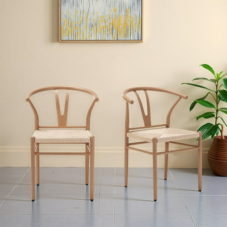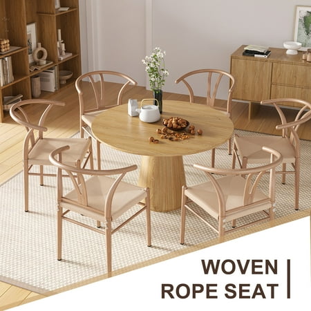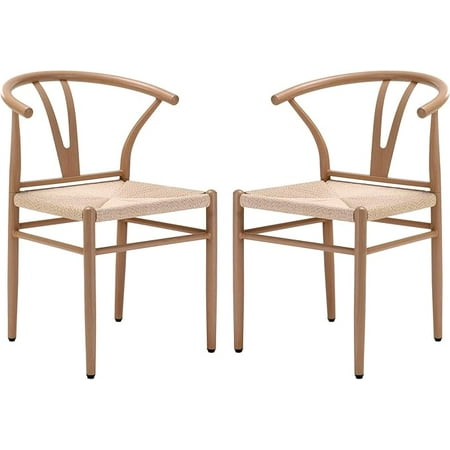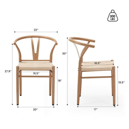 These MAYEERTY metal wishbone chairs have a sturdy heavy-duty base and can hold up to 300 lbs, ensuring long-lasting safety for you and your family. They are easy to assemble with the included instruction manual, taking only 15-20 minutes. Perfect for dining rooms, living rooms, bedrooms, and offices, these chairs feature a mid-century modern style that matches Nordic, idle, and modern decor. The ergonomic design includes an 113° backrest angle, U-shaped armrests for elbow relaxation, and a hand-woven rattan seat for comfort.