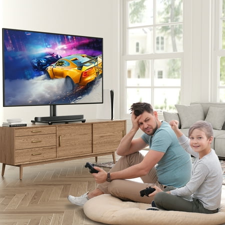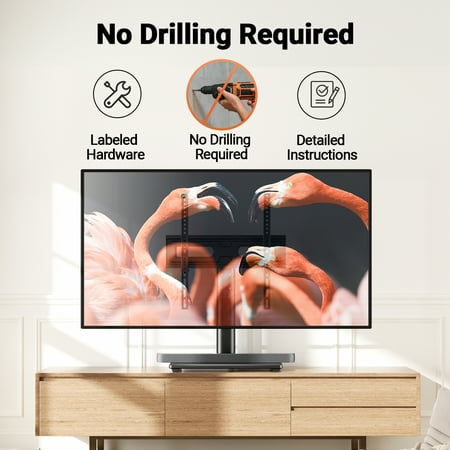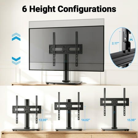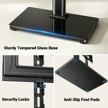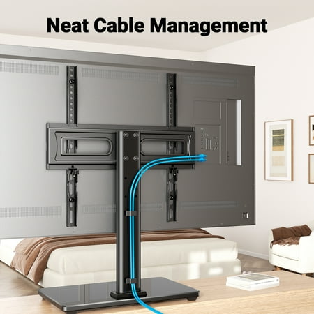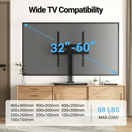 Upgrade your setup with the Perlesmith Universal Swivel Tabletop TV Stand (PSTVS28B). This stand fits most 32" to 60" TVs, including flat and curved screens. It holds up to 88 lbs and works with VESA patterns from 100x100mm to 400x400mm. It’s compatible with many brands like Samsung, LG, TCL, Vizio, and more. The stand swivels 35° left and right, so you can adjust your screen to the best angle. It also offers 6 height options, helping you find the right viewing height for your space. Made of strong steel with a tempered glass base, it looks clean and modern while holding your TV safely. The back of the stand includes cable clips to keep wires organized. Setup is simple with the included hardware and manual. No need to drill into your wall—great for renters or anyone who wants an easy option. Enjoy a 3-year manufacturer warranty for added peace of mind.