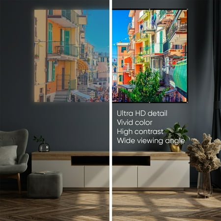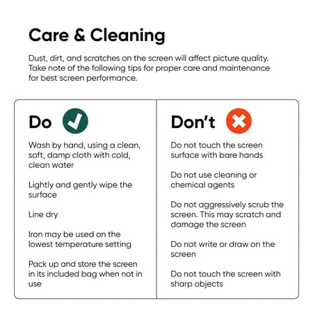 Turn any space into a personal theater with the onn 120" Portable Indoor/Outdoor Wall-Mounted Theater Projection Screen. This foldable screen offers a generous 120-inch diagonal display with a 16:9 widescreen ratio, perfect for movies, sports, and presentations. Made from 100% wrinkle-free white polyester with black edging, it enhances color and brightness for crisp, vivid projection. The screen supports both front and rear projection and is easy to install with the included mounting accessories. When not in use, simply fold it and store it in the zippered storage bag. Enjoy bright, clear viewing indoors or outdoors with the onn 120" Portable Indoor/Outdoor Wall-Mounted Theater Projection Screen.