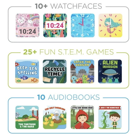 The Play Zoom 2 Kids Smartwatch is both educational and fun, being a gift that keeps on giving! It comes with features such as a swivel Camera, gallery, customizable clock faces, 20 learning, and active games, sound animations, and so much more! This exciting smartwatch is a great present for all Kids as it allows them to grow, keeps them engaged, and enables an interactive experience daily. Plus the Play Zoom 2 doesn't connect to a cellular device and comes with an In Case of Emergency (ICE) Card on the watch, so it's free of GPS tracking and completely safe!