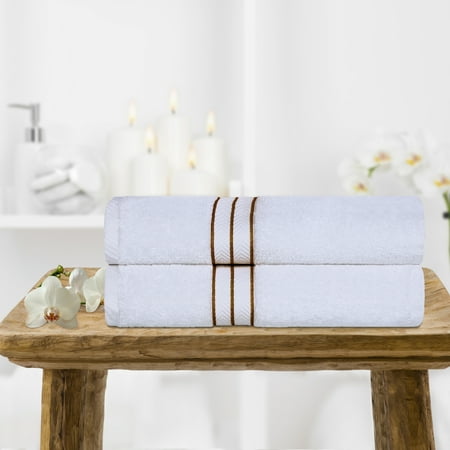 Bring comfort and style to any bathroom or powder room with our Turkish Cotton Plush 2-Piece Solid Highly Absorbent Bath Towel Set. This premium Turkish Cotton construction boasts a heavy towel weight, making each bath towel thick and highly absorbent to keep you warm and get you dry quickly. Each towel in this bundle will soak up moisture effortlessly, keeping you toasty warm as soon as you step out of the shower or bath. The delicate dobby-style border and accenting trim adorn each towel to bring a pop of color to any master bath, powder room, or guest bath. This bath towel set is perfect to use when pampering yourself or keeping on reserve for guests. Superior Turkish Cotton Ultra-Plush 2-Piece Toast Bath Towel Set