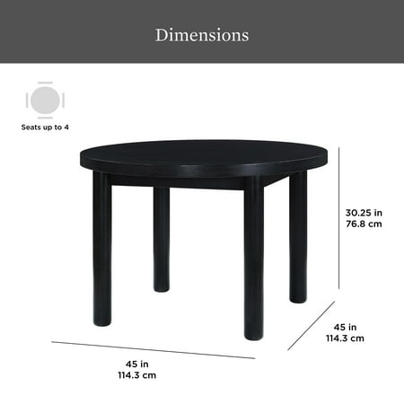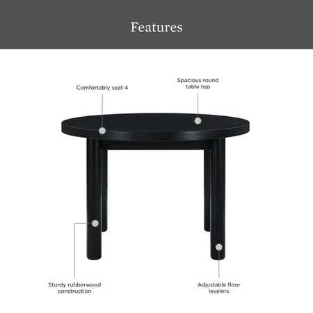 Discover the Adlin Round Dining Table, a centerpiece that brings warmth, charm, and practicality to your dining experience. Designed with a focus on both aesthetics and functionality, this table from Better Homes & Gardens encapsulates the essence of modern living. Its solid wood table top invites an air of cozy sophistication to any meal. Coupled with solid rubberwood legs and finished in sleek black, it strikes a perfect balance between rustic elegance and contemporary design. The Adlin doesn't stand on good looks alone. It's built to last. Its round legs infuse your space with a hint of vintage flair and a promise of unwavering stability. Adjustable floor levelers ensure that this table stands firm and even on any surface. Functionality meets form in this ideally sized table, which comfortably seats four. Whether you're hosting a dinner party in a formal dining room or enjoying a quiet breakfast in a cozy kitchen nook, the Adlin Round Dining Table adapts seamlessly. It's more than just a table and a gathering spot for friends and family, a place for sharing meals, laughter, and memories. Ease of assembly and the promise of durability make the Better Homes and Gardens Adlin Round Dining Table a smart choice for anyone looking to enhance their dining space.