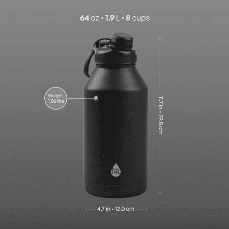 The TAL Stainless Steel Ranger Water Bottle 64 oz, Black, 1 each, is perfect for outdoor adventures. The easy-carry loop makes it convenient to take anywhere, and the narrow spout offers controlled sipping. A large opening allows for easy cleaning and quick ice refills to keep drinks cool. Made from durable stainless steel, it’s built to handle rugged use. Stay hydrated and choose TAL for your next adventure.
