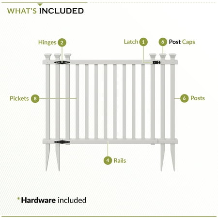 Designed to complement the Baskenridge Vinyl Fence, this gate kit is complete with posts and hardware. The gate has included wings for additional stability. This means that although the gate is 51-3/8 in. W, the opening is 36 in., so you will want to plan accordingly.