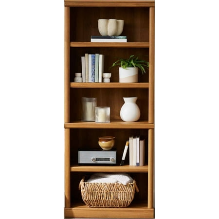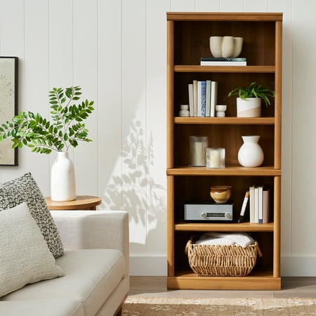 Unleash boundless organizational possibilities with a 5-shelf bookcase from the Better Homes & Gardens® Ashwood Road collection – because one can never have too much storage space. This refined, tall bookcase boasts five spacious shelves, offering ample storage for a diverse range of items, from novels and cookbooks to the latest home décor trends and cherished family photos. Seize control of your storage requirements with three adjustable shelves, enabling you to tailor the height and create adaptable storage solutions for items of all shapes and sizes. This versatile engineered wood bookshelf will accommodate your unique treasures by ensuring there's a dedicated space for each one. With its understated design and captivating style, this display bookcase seamlessly elevates any room in your home. Finished in Light Honey, this exquisite 5-shelf bookshelf not only meets your storage needs but infuses a touch of rustic elegance into your living space, striking the perfect balance between functionality and style.