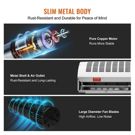 Powerful Air Curtain - Keeping You Comfortable Year-Round Say goodbye to outdoor pollution and welcome your invisible . Give your home a breathing space, bid farewell to the uncertainty and pollution of the outdoors. Powerful Air Curtain - Keeping You Comfortable Year-Round From welcoming customers in supermarkets, providing a serene atmosphere in restaurants, maintaining indoor at home, to keeping exhibition displays spotless, our air curtain is your professional for multiple occasions. Cleanliness starts here. Height is no longer an issue, as our full range of air curtains is compatible with various settings. With both centrifugal and cross-flow designs, flexible installation, and adjustable heights, we offer the perfect solution to meet your needs. Pre-drilled back panels, equipped with microswitches featuring precise and high sensitivity trigger forces, provide reliable stability whether operated frequently or in harsh conditions. With a professional pure copper motor, powerful performance addresses concerns about short lifespans. Adaptation to various environmental temperatures, efficient heat dissipation, corrosion resistance, and overload protection make it easy to a stable and enduring indoor clean surroundings.