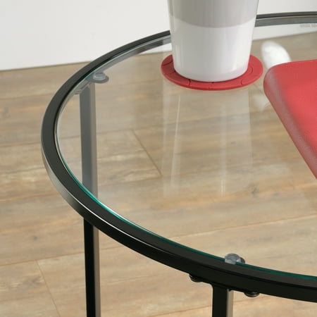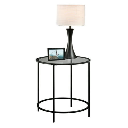 All that glitters is gold. Do your home a favor and add a touch of luxurious style to your living space with this sophisticated side table from the Better Homes & Gardens Nola collection. This round side table features a safety-tempered glass surface and metal construction that adds an extra pop of style to your home decor. The glass top makes the perfect spot to store books, TV remotes, glasses or those much needed cups of coffee. Switch it up and use it as a display area for pictures of your family, vases full of flowers, or any other of your life’s most prized possessions. Its circular top design gives it a stunningly unique appearance that is sure to grab the attention of your friends and family. Constructed from sturdy metal, this sleek and elegant side table adds classic beauty to any room and will have you living in the lap of luxury.