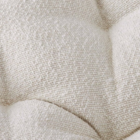 Add a touch of comfort to your home with the Better Homes & Gardens Papasan bench with a cream boucle fabric cushion. Designed with a sturdy steel frame and faux wicker accents, this classic bench features a soft 4.5" thick tufted seat cushion covered in rich velvet-look upholstery to create an inviting seating option for two adults. The Better Homes & Gardens Papasan bench with cushion has a chair bowl that securely attaches to the base for comfort and stability. This Papasan bench's cushion cover is made from 100% polyester that is hand-wash only with non-chlorine bleach when needed. Lay flat to dry. Cool iron if necessary. Do not dry clean.