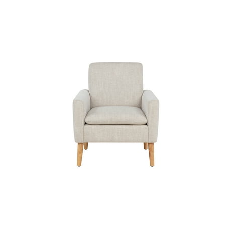 Mainstays Round Arm Accent Chair With Rubber Wood Legs, Ivory Linen Fabric