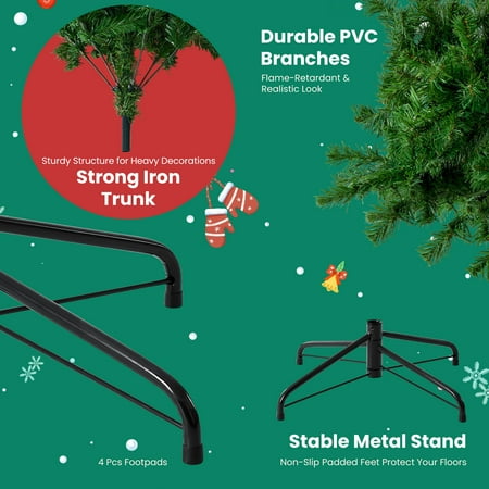 Add a touch of festive magic to your home with the Alvantor Prelit Artificial Christmas Tree. This lush green tree features 347 lifelike PVC branch tips that offer ample room for your favorite ornaments. Pre-strung with 120 warm incandescent lights, it brings a cozy glow to any room with 8 different lighting modes. The intuitive hinged design ensures quick and hassle-free setup, allowing you more time to enjoy the holiday spirit. The sturdy metal stand guarantees stability, making this tree both practical and beautiful. Perfect for indoor use, it transforms any space into a winter wonderland.