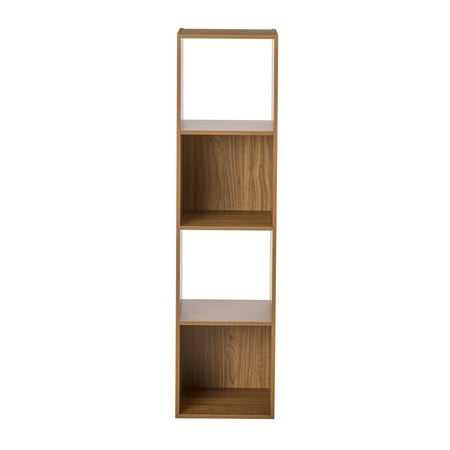 The Mainstays 4-Cube Vertical Storage Organizer features four compartments perfectly sized for storing and displaying office supplies, books, clothes, craft supplies, photos, collectibles and so much more! This sturdy bookcase can stand vertically or horizontally to best suit your needs and space. They are compatible with Mainstays 10.5" x 10.5" collapsible storage bins and cube inserts (sold separately) and available in multiple finishes. Two open back cube shelves make managing cords and cables easy, while two closed back shelves help keep items securely housed. This functional and stylish cube shelving system is the ideal home storage solution for your living room, family room, home office, playroom, closets and more.