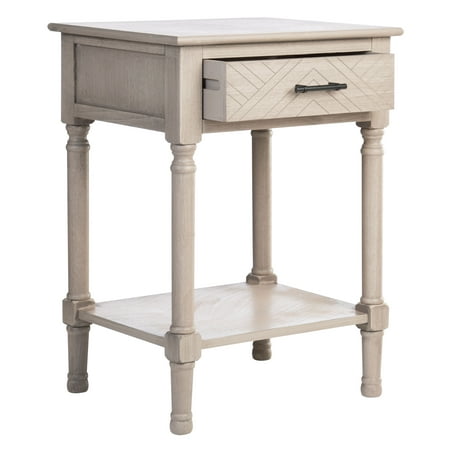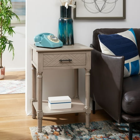 Shop Safavieh at Walmart. Save Money. Live Better. SAFAVIEH Peyton French Beige Rectangle Wood Storage End Table (19 in. W x 15.8 in. D x 26 in. H) Understated yet sophisticated, this Peyton Accent Table is ideal for today’s classic contemporary décor. Peyton’s timeless turned legs and carved wooden accents are given a modern touch with the oversized herringbone pattern on its drawer, while a soft greige finish is perfect for any room’s color scheme.