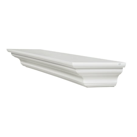 Clean and simple, yet elegant, this shelf blends with any decor. Created from Grade A medium density fiberboard also known as MDF which is very commonly used for furniture, cabinetry, shelving and decorative moldings. The shelf ships in 1 piece. Mitered hanger board assembly included for easy installation. Shelf Length: 60" Shelf Depth: 10" Bottom Base Length: 51" Bottom Base Depth: 4 5/8" Overall Height: 5" Weight 32 pounds. Look for the pearl inlay that graces the right hand side of the shelf as proof that you have received an authentic Pearl Mantel. Paint grade only. Arrives painted and ready to install.